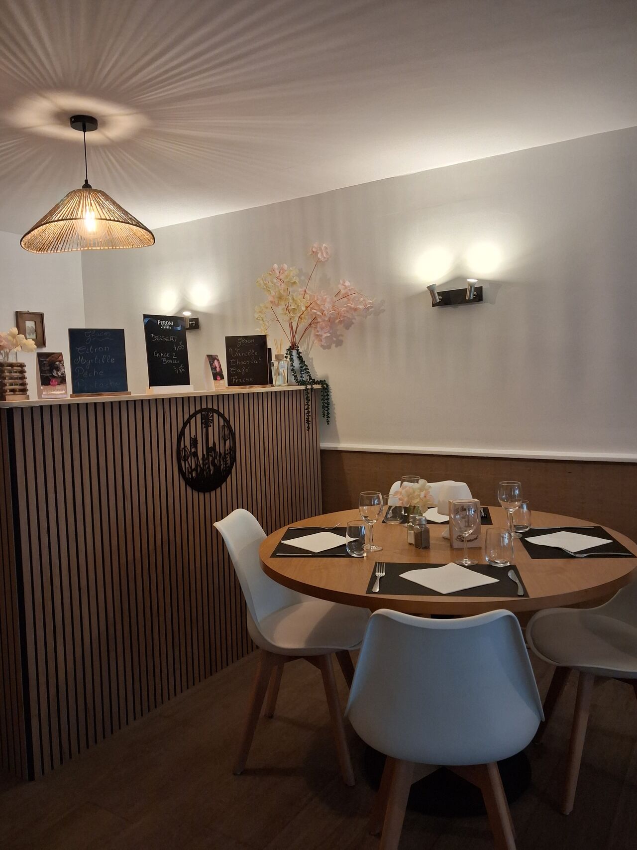 Installé au cœur du village, notre salle et notre petite terrasse vous attendent .
