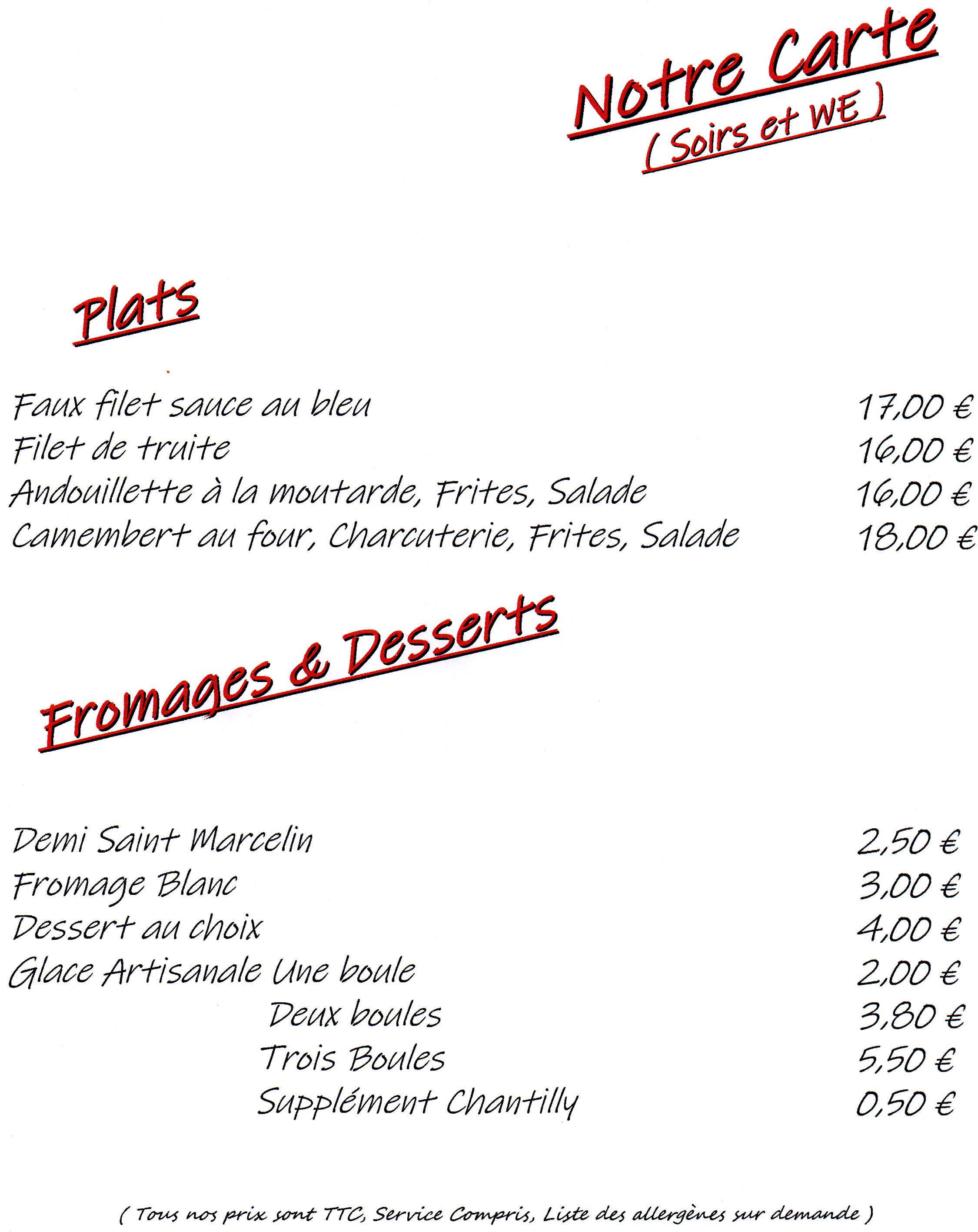 Nous vous proposons une restauration simple et traditionnelle ainsi qu'une carte de pizzas. Le dimanche midi, la formule grenouilles vous est proposée.
